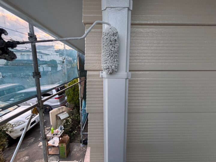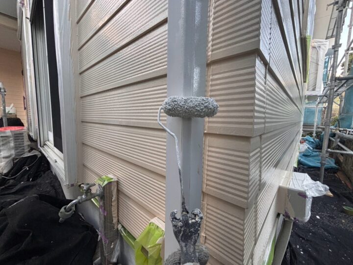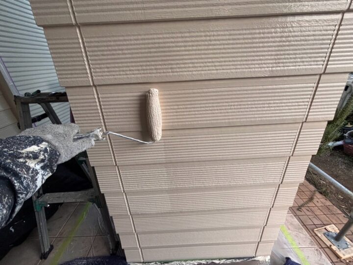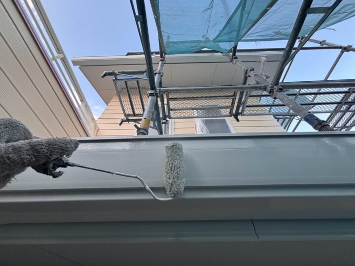 さらに上塗りします。外壁の見た目が美しくなっただけではなく、3回塗りを経て十分に厚みのある塗装の膜が形成されます。