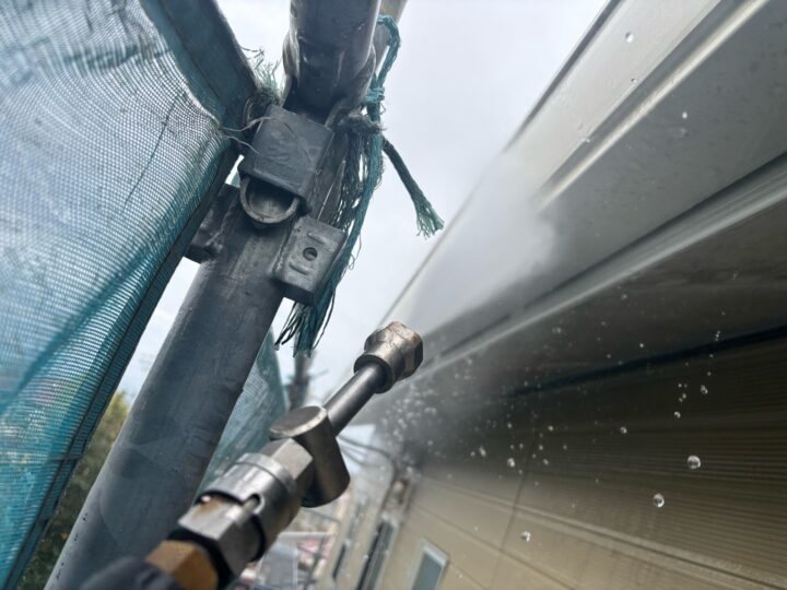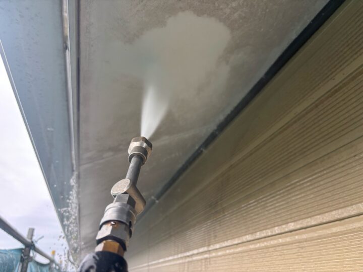 水圧により家の素材を傷めないように、箇所に応じて洗浄の強さを加減して洗っていきます。