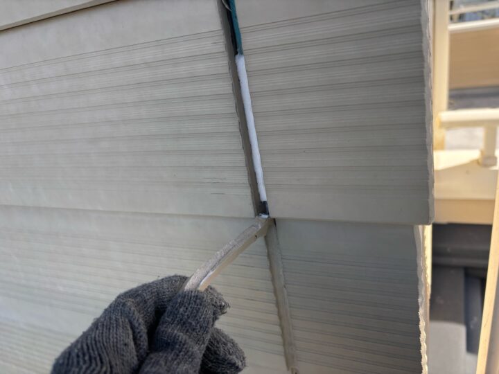 目地の深さに合わせて、新しいコーキング材をすき間なく充填していきます。