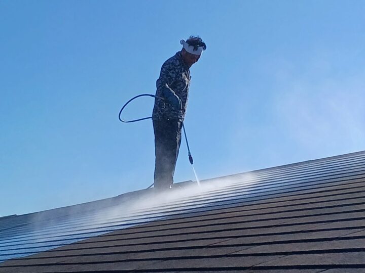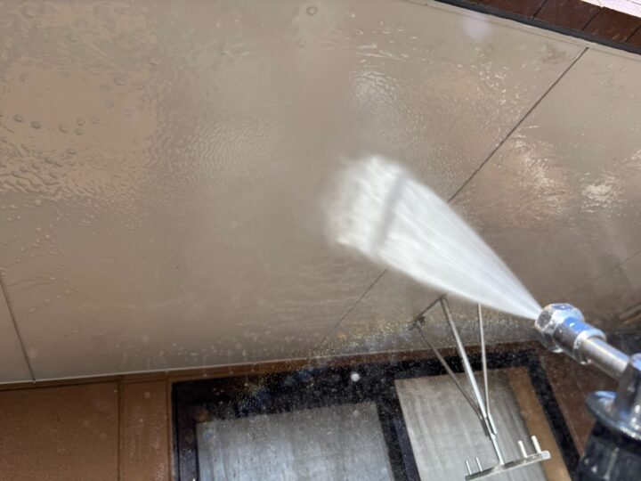 水圧により家の素材を傷めないように、箇所に応じて洗浄の強さを加減して洗っていきます。