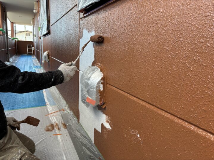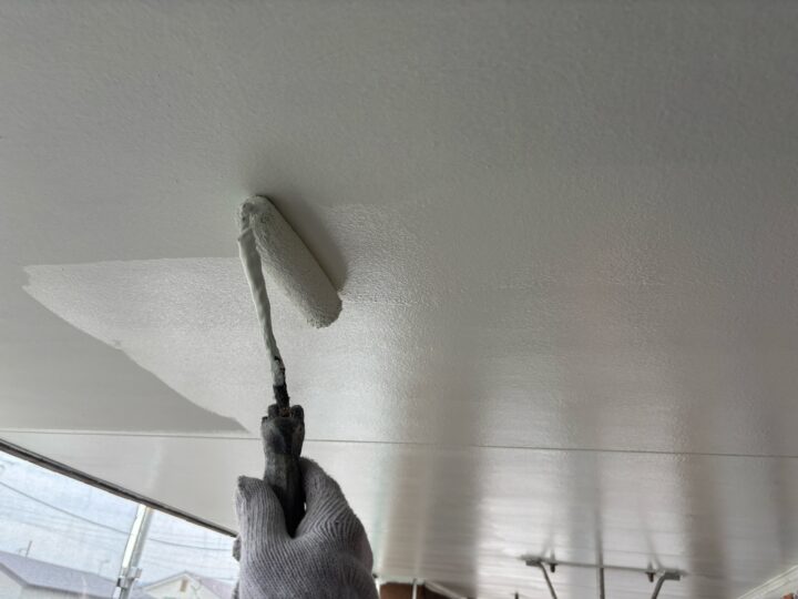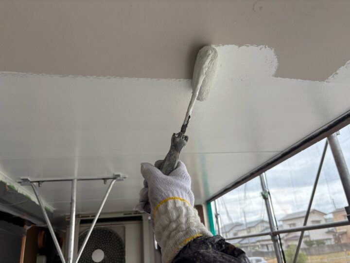 上塗り1回目がしっかりとかわいてから上塗り2回目を塗装していきます。仕上げの一番表面の塗膜なのでより一層、丁寧に塗装していきます。